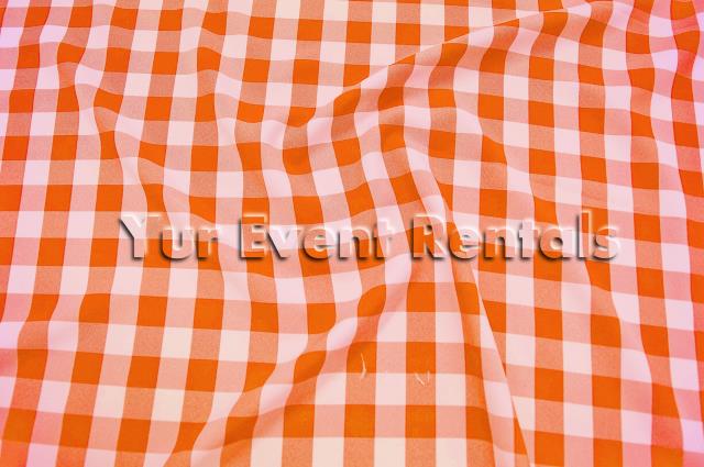 * Please call us with any questions about our 108 inch rd gingham print orange rentals serving the New Orleans area.