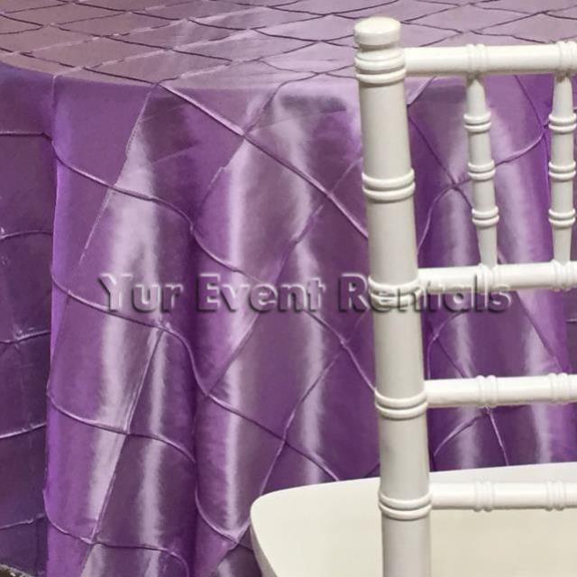 * Please call us with any questions about our pintuck 108 inch round linen lavender rentals serving the New Orleans area.