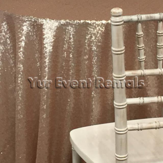 * Please call us with any questions about our glitz sequin 108 inch round champagne rentals serving the New Orleans area.