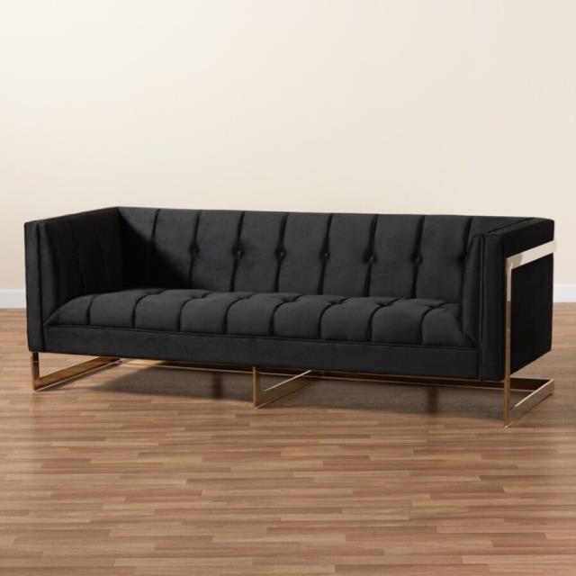 Black Velvet Sofa with Gold Trim